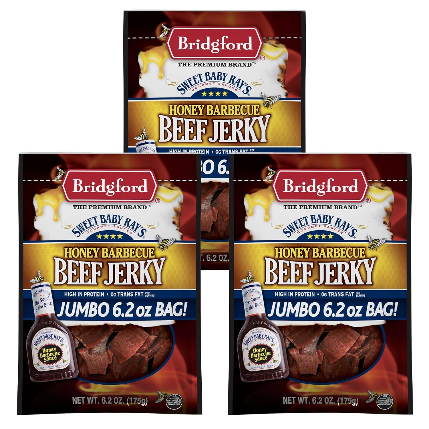 Bridgford - SBR - Beef Jerky - Honey BBQ - 6.2 oz - Pack of 3 Bridgford - SBR - Beef Jerky - Honey BBQ - 6.2 oz - Pack of 3